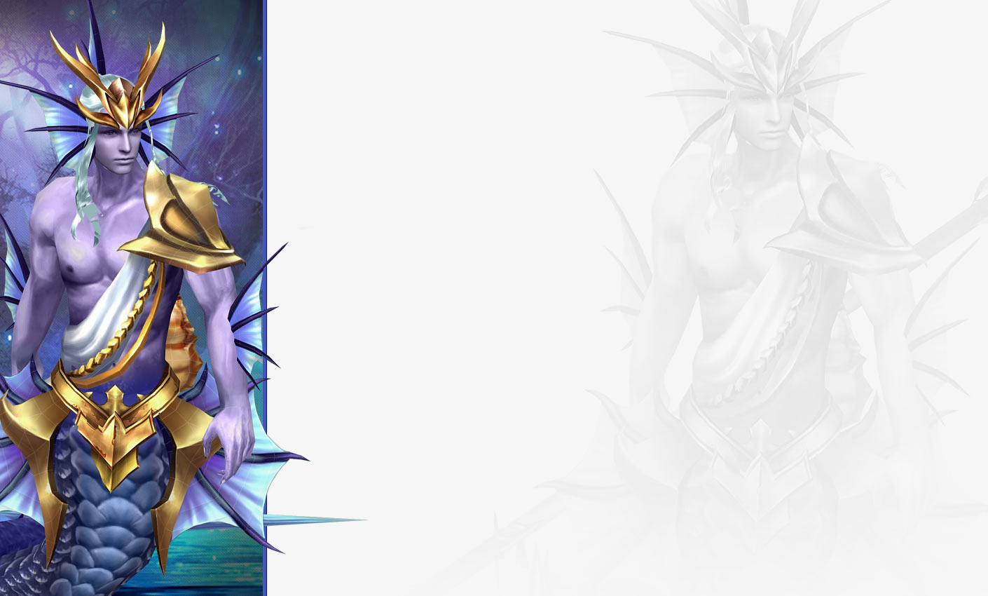 来自高等位面时空海的水之王特立同,上半身是俊美的少男,下半身是线条 优美鱼尾,在这种状态下,他能号令所有的水元素为他而战。当面对炎魔 亚罗斯毁天灭地的威能时,彩虹女神向水之王发出了召唤,受到伊里斯恳求 而来的特里同,以完全的水元素掌控稳定住了局势。擅长水属性的单体辅助、 特别是防御,冰晶护盾强大的防御能力,水灵之殇更是可以挡住致死攻击, 水之王的强大毋庸置疑。